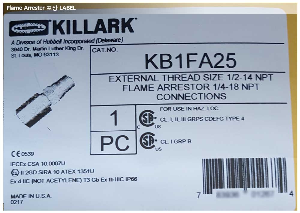 동양피엔에프, IBN SINA POM 프로젝트, Killark사 Flame Arrester 페이지 정보 작성자 관리자 작성일17-03-03 15:29 조회14,484회 댓글0건 관련링크 이전글 다음글 목록 본문 공급품목 : Killark Flame Arrester상세사양 : KB1FA25 모델 댓글목록 등록된 댓글이 없습니다. 이전글 다음글 목록